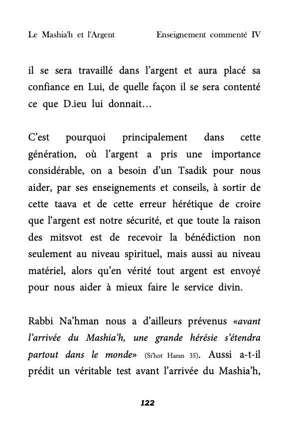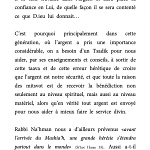 Ce livre n’est pas une recette pour gagner plus d’argent, mais un guide pour acquérir plus de foi et travailler moins afin d’avoir plus de temps pour le service divin, tout en sachant que D.ieu comblera tout manque.