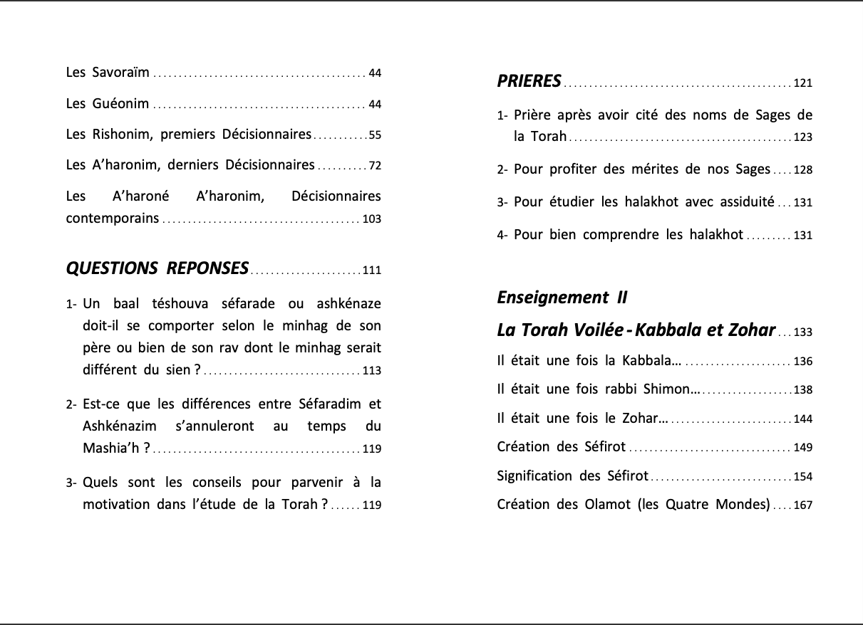 Ce livre nous propose également de découvrir avec un regard tout-à-fait nouveau, la transmissions de la Pensée juive à travers le temps, depuis les Auteurs du Talmud (Tanaïm et Amoraïm), jusqu’aux Richonim et A’haronim, Kabbalistes et Tsadikim de notre génération, qui tous ont consacré leur vie à la recherche de la vérité, la vraie vérité.