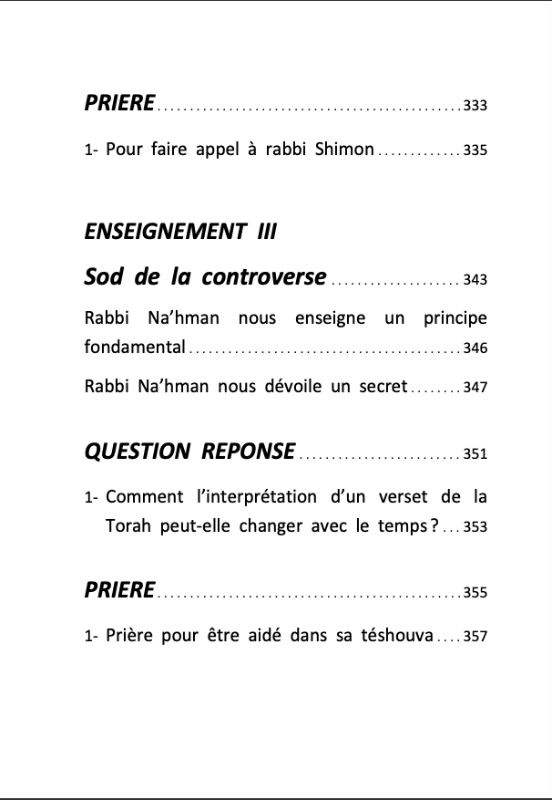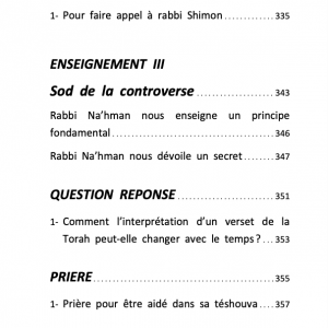 C’est pourquoi, chaque enseignement est accompagné de prières extraites du Likoutey Téfilot de rabbi Nathan, principal élève de rabbi Na’hman.