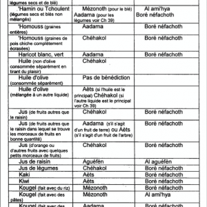 Un grand travail de répertoriage a notamment été fait afin de proposer au lecteur le plus grand nombre de produits alimentaires parmi les plus récents dans le tableau des bénédictions, avec par exemple les différentes céréales, muesli, granolas, ainsi que de nombreux produits sans gluten.