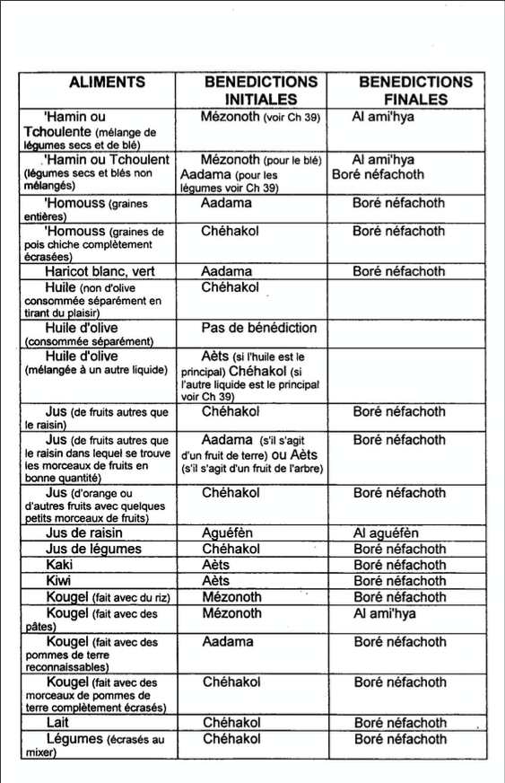 Son tableau récapitulatif, à la fin du livre, regroupant les aliments par ordre alphabétique avec leurs bénédictions initiale et finale, a contribué à faire de ce livre un « classique », tant pour sa qualité et son exhaustivité que pour son aspect pratique.