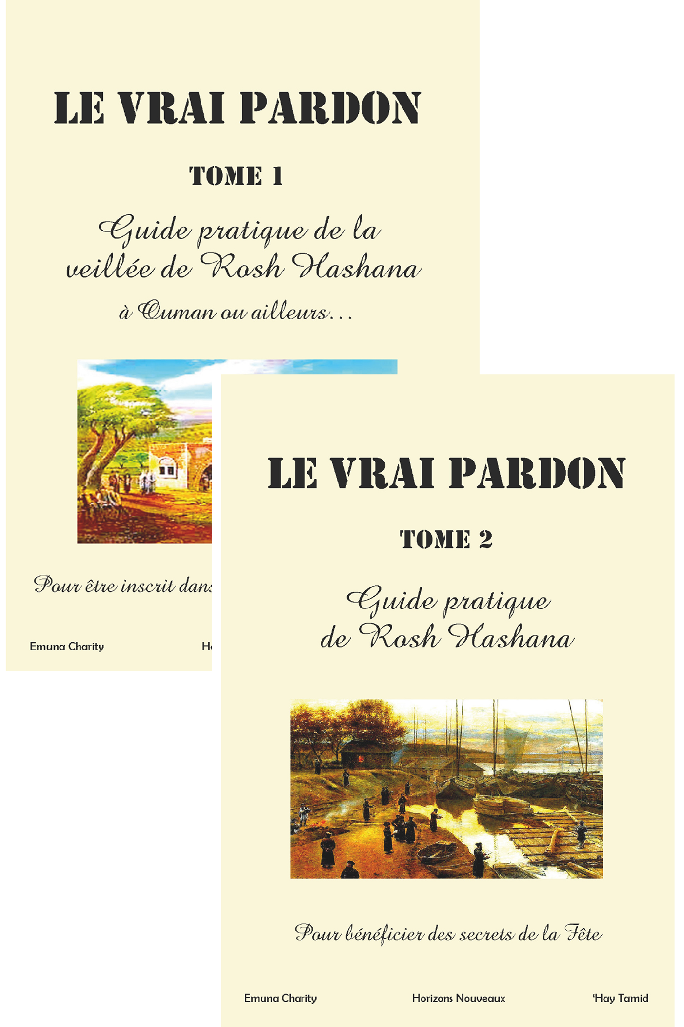 Le vrai pardon Tome 2 complète le Tome 1 dans le même esprit de guide pratique, déroulant étape par étape les deux jours de Roch Hachana, avec notamment les sédarim du soir et leurs ségoulot, les 4 conseils de rabbi Na’hman pour être bien jugé en ces deux jours redoutables, les études à faire au cours des différents repas, des explications sur la prière de Roch Hachana, les sonneries du Choffar et les intentions à avoir en les écoutant, les halakhot, lectures et prières du Tachlikh… jusqu’à la Havdala.